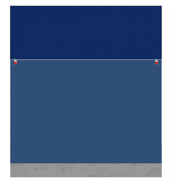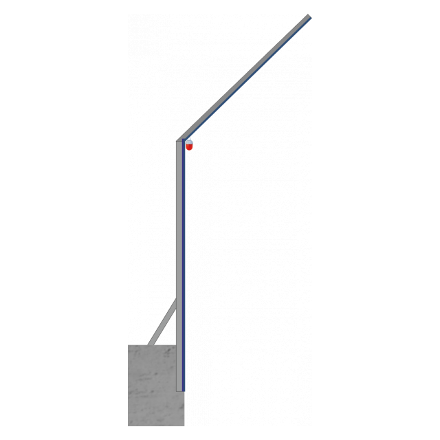 Характеристики ~Козырёк ~Композитная алюминиевая панель RAL 5003 ~Заполнение ~Композитная алюминиевая панель RAL 5003 ~Труба ~Стальная RAL 5003 квадратная 50×50×3 ~Освещение ~Сигнальные светодиодные фонари ~Основание ~ФБС бетон В 30