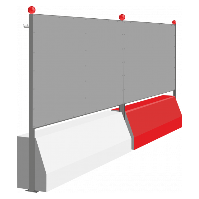 Характеристики ~Габариты секции ~2000 × 2540 мм ~Опорный блок ~бетонный, сечения 24-4-6У (2400 × 400 × 600 мм) ~Секция ограждения ~рамная ~Рама ~трубы из профиля 60 × 40 мм, 40 × 20 мм ~Заполнение проемов ~перфолист или профлист ~Доп. комплектация ~комплект сигнального освещения