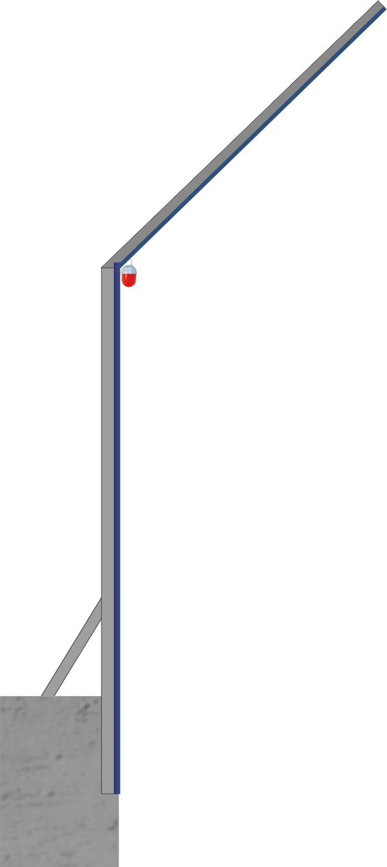 Характеристики ~Козырёк ~Композитная алюминиевая панель RAL 5003 ~Заполнение ~Композитная алюминиевая панель RAL 5003 ~Труба ~Стальная RAL 5003 квадратная 50×50×3 ~Освещение ~Сигнальные светодиодные фонари ~Основание ~ФБС бетон В 30