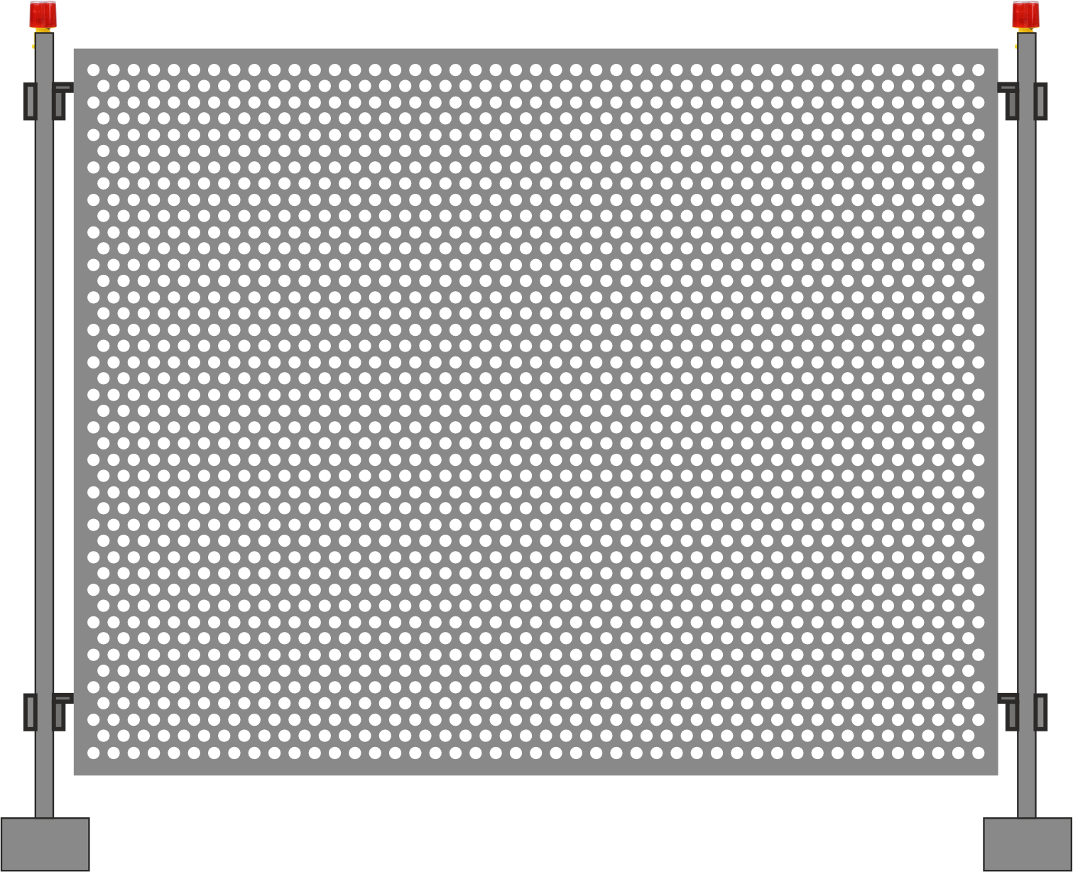 Характеристики~Размеры 2 м × 2,4 м ~Сварная рама 51 мм и 25 мм ~Заполнение - перфорированный лист 0,55 мм, 0,7 мм, 1,0 мм Wdtn оцинкованный и Ral ~Блок бетонный, габариты: 600 × 150 × 250 мм, ~Отверстия для трубы - 40 мм и 51 мм. ~Вес - 35 кг ~Дополнительная комплектация - Стабилизационная подпорка с блоком Сигнальное освещение ~Способ нанесения рисунка - Лазерная резка~~Габариты: 2,336 × 2,212 м стойки из труб d51мм и 25 × 25 мм рал 7016. Заполнение: перфолист оцинкованный щелевидный, толщиной 0,9 мм, 1,0 мм, 0,55 мм. Крепежи и блоки бетонные в комплекте 600 × 150 × 250 мм.